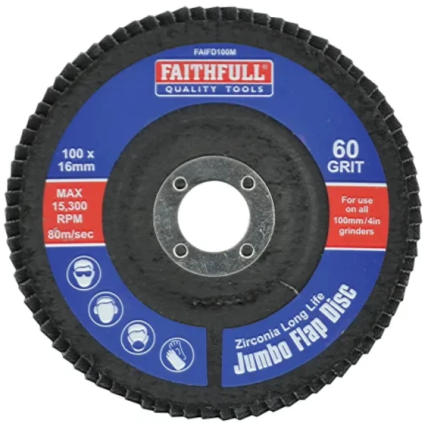 Faithfull Abrasive Jumbo Flap Disc 100mm Medium (60 Grit) has been added to your cart