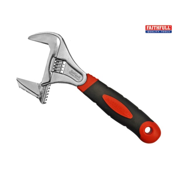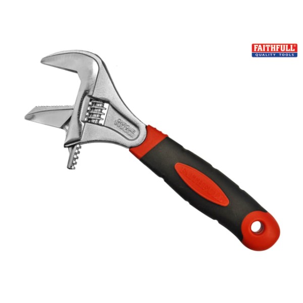 This Faithfull large capacity wide opening wrench has a reversible jaw with serrated edge. Made from chrome vanadium with soft-grip handle for comfort.