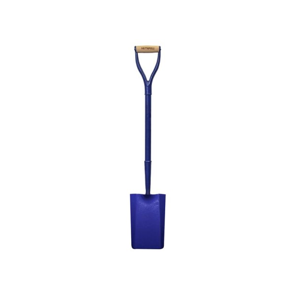 The Faithfull All Steel Trenching Shovel features a solid forged carbon manganese steel blade and socket, correctly tempered for strength. Its tubular steel shaft is welded to the socket for a strong smooth join. Powder coated for rust prevention. The shaft is fitted with a wide and deep MYD hilt to accommodate large and gloved hands. A wooden cross dowel adds comfort. Used for creating trenches for underground cables and pipes.