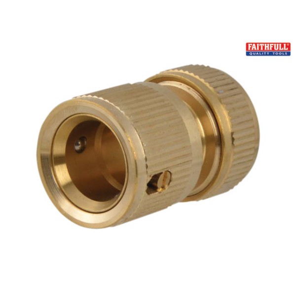 A popular quick-release brass water hose fitting for use around the garden.