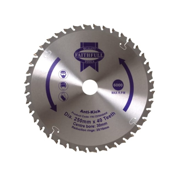 Faithfull Circular Saw Blade Anti Kick 250 x 30mm x 40T has been added to your cart