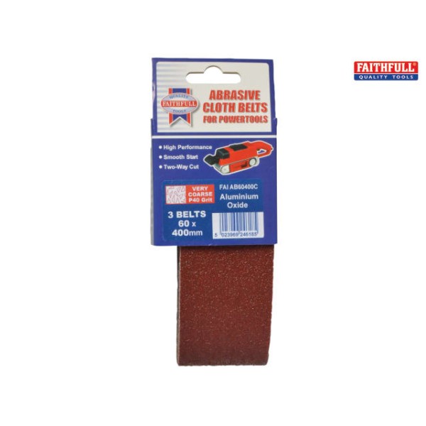 Pack of 3 Faithfull Cloth Sanding Belt 400 x 60mm Coarse