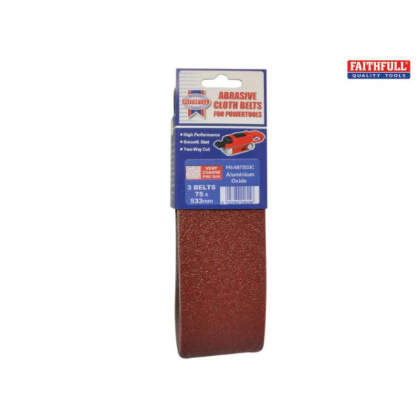Pack of 3 Faithfull Cloth Sanding Belt 533 x 75mm Coarse