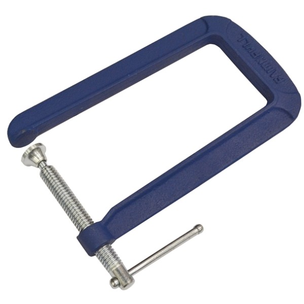 The Faithfull FAIG8DT deep throat G Clamp has a drop-forged steel body for added strength. The deep cut Acme threads allow for smooth and fast movement. The broad swivel shoe adjusts to the correct angle to apply even pressure and the clamp has a powder coat to protect from corrosion.