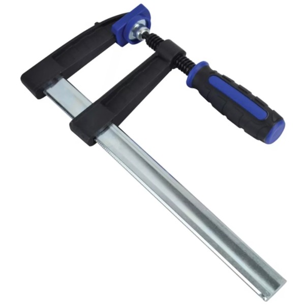 The Faithfull F-Clamp has a dual composite handle for increased comfort and a fast thread for speed. The high-carbon steel heads provide added strength. Fitted with cushioned covered heads for increased material protection.