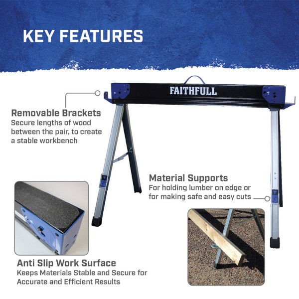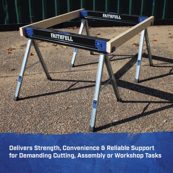 The Faithfull sawhorses are expertly crafted from high-grade steel, ensuring exceptional strength and durability while remaining lightweight for easy portability. These sawhorses are designed to meet the demands of both professional and DIY enthusiasts, offering a perfect blend of functionality and convenience.