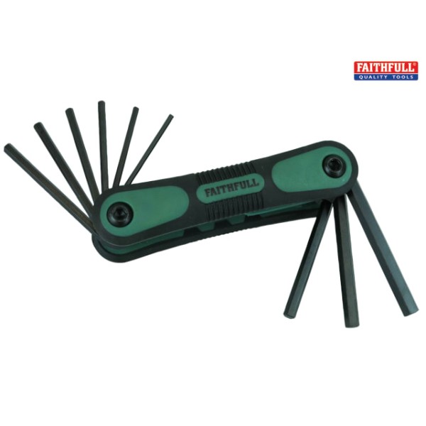 Faithfull Compact folding hexagon short arm key set in a soft-grip, non-slip storage case.