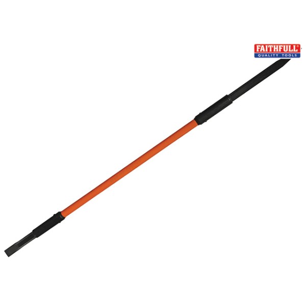 The Faithfull Insulated Crow Bar is fully insulated and made to BS8020 standards. With a pencil point at one end and a flat chisel edge at the other. The insulated shaft is manufactured using a solid fibreglass core which is coated with an abrasive resistant orange polymer coating.