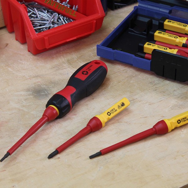 Faithfull VDE screwdrivers are manufactured to BS EN60900:2012 and are individually tested at 10,000V in a water bath before leaving the factory. This guarantees a safe working limit of up to 1,000V providing the maximum level of safety.