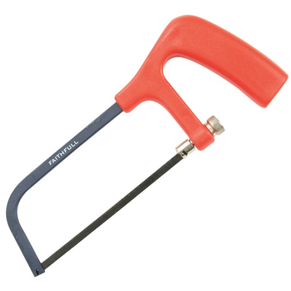 The Faithfull Mini Saw heavier version of the junior hacksaw with an epoxy coated steel frame and moulded pistol-grip handle which incorporates the blade tensioning nut, supplied with a hardened and tempered blade which is ideal for small cutting jobs in metal and wood.