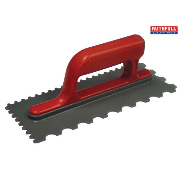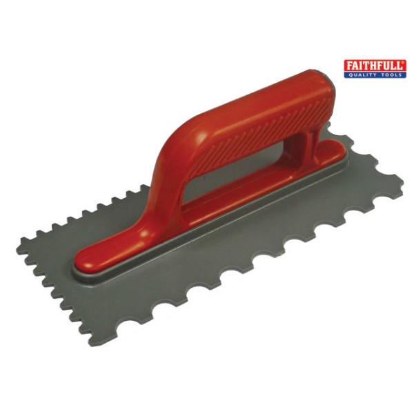 Faithfull Notched Trowel V 4mm & Round 7mm Plastic Handle 11 x 4.1/2in has been added to your cart