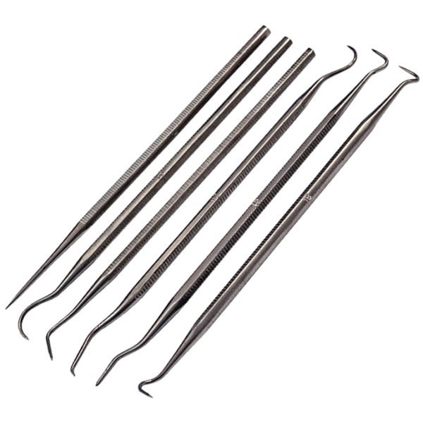 The Faithfull useful set of picks and hooks manufactured from stainless steel. The set contains 3 single end picks and 3 double end hooks. Suitable for pin or clip picking and the removal of seals and O-rings and many other applications. Approximate lengths 140mm - 165mm.