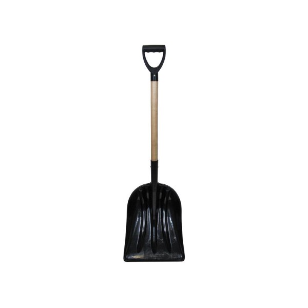 This lightweight multipurpose shovel has a large impact-resistant plastic scoop with reinforcing ribs and deep sides. The plastic scoop does not create sparks when dragged across a concrete floor, making it a safe choice for use with flammable materials.