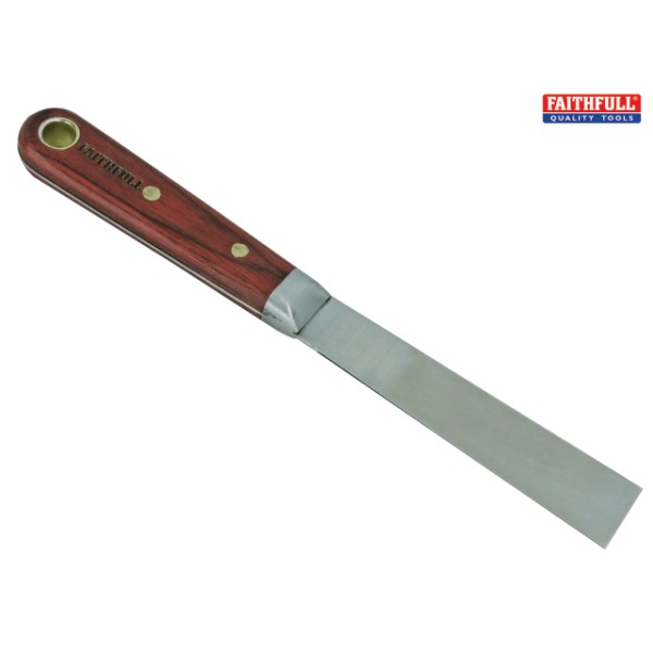 Faithfull Professional Filling Knife with a corrosion resistant stainless steel blade for long life. The blade is attached to a hardwood handle with brass rivets and its tang runs through the full length of the handle for added strength.