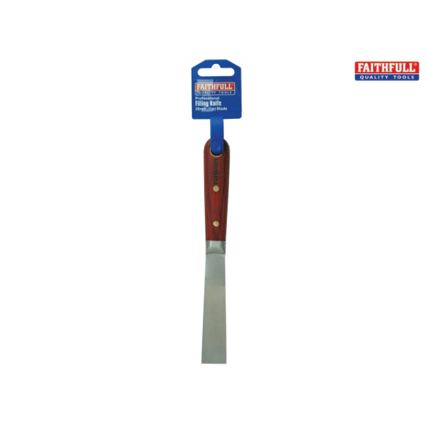 Faithfull Professional filling knife featuring a top quality, flexible stainless steel blade attached with brass rivets to a hardwood handle. The blade is through tanged for heavy-duty application.Available in 5 widths.