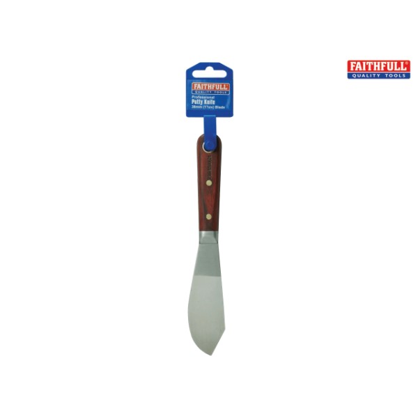 The Faithfull professional putty knife featuring a top quality stainless steel blade attached with brass rivets to a hardwood handle.The blade is through tanged for heavy-duty application.