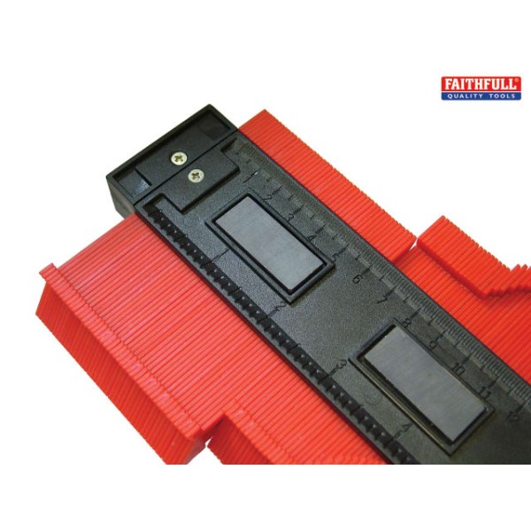 The Faithfull Profile Gauge provides a quick and easy way to accurately cut around unevenly shaped surfaces that would otherwise prove difficult to tackle, helping to prevent costly mistakes. When pressed against a surface, the profile gauge will produce a copy of the shape of that surface. This shape can then be transferred to provide a drawn cutting line onto the material being fitted.