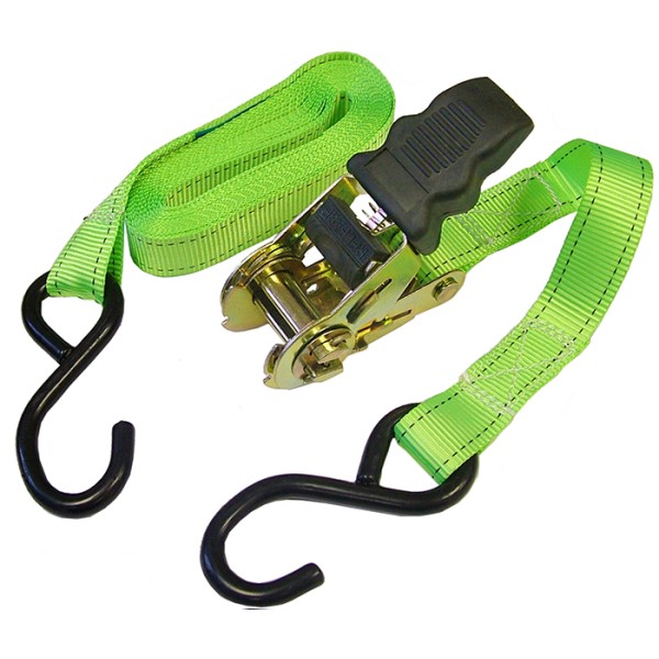 This Faithfull Ratchet Tie-Down is manufactured from 25mm wide triple layer Terylene webbing which is weatherproof, cut and abrasion resistant. The ratchet and S style hooks ensures that loads are secured quickly and efficiently and provide ease of use. The tie downs meet the following specifications: