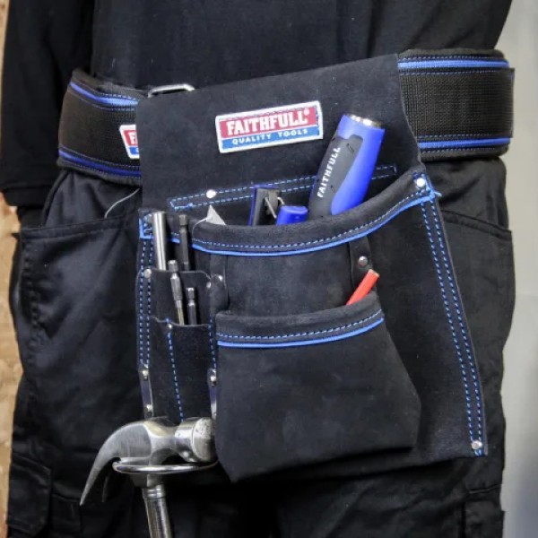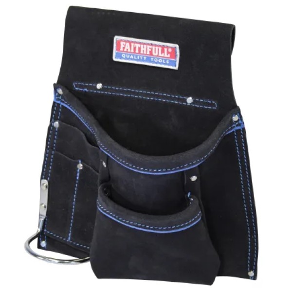 This Faithfull Single Tool & Nail Pouch is manufactured from high-quality suede. With double stitching and reinforced rivets at pressure points for added durability. It has 2 large pockets, 3 small pockets and a hammer loop, it provides ample room for nails and hand tools.