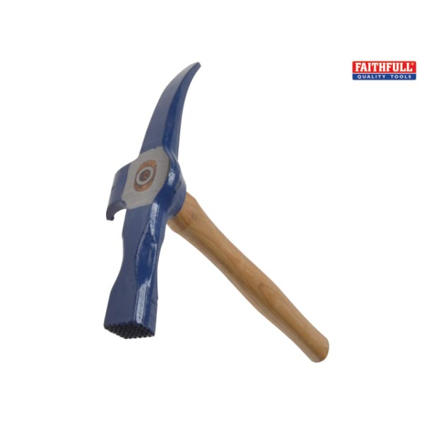 The Faithfull Slater's Hammer is a pointed pick at one end for making holes in slates and a claw in the centre of the head for pulling nails. On the opposing end is a rectangular striking head.Fitted with a traditional hickory handle.