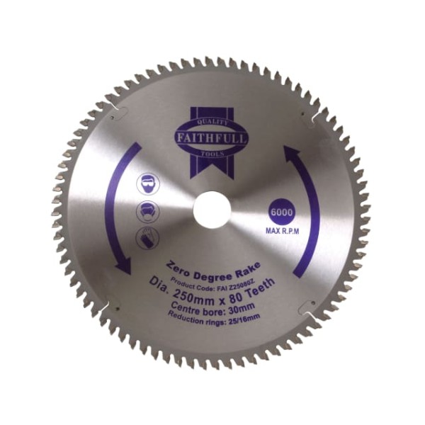 Faithfull TCT Circular Saw Blade Zero Degree 250 x 30mm x 80T has been added to your cart