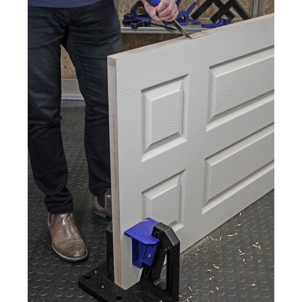 The strong grip holds materials up to a width of 55mm (2 ¼in) making it ideal for working on FD30 and FD60 fire doors. Simply push the grip out of its holder and securely lock onto the side of the object, this can be done with a hand or foot depending on the application it’s used for.
