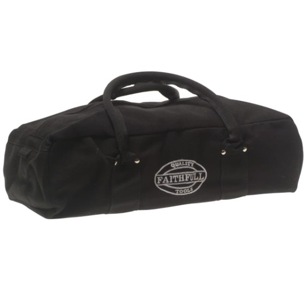 The Faithfull Zip Top Holdall is made from a strong durable canvas featuring reinforced handles, heavy-duty zip fastener and a studded fibreboard base, end pockets and a level holder.
