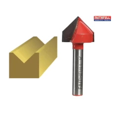 The Faithfull Router Bit TCT 45° Chamfer is a bearing guided tungsten carbide tipped cutter producing a 45° chamfer to a maximum depth of 10mm. Suitable for use on softwood, hardwood and all man-made boards.1/4in Shank..