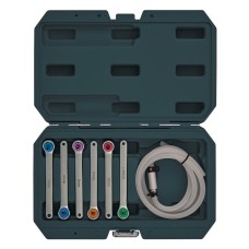 FEATURES:This brake bleeder wrench kit allows the completion of a brake bleeding service without removing the wheels or raising the vehicle. Wrenches made from high-quality steel for durability and strength. Satin finish for corrosion protection. Colour-coded for easy identification. Drain hose fitted with a one-way valve. Supplied inside blow moulded plastic storage case.CONTENTS:6 x 6-point Wrenches: 7, 8, 9, 10, 11, 12mm1 x Drain hose with check valve..
