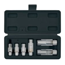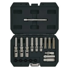 FEATURES:This thin wall PSG glow plug socket set is designed for the disassembly/assembly of common type glow plugs and special PSG glow plugs with pressure sensors. Made from high-quality chrome vanadium steel for durability and strength. Satin chrome finish for corrosion protection. Supplied inside a blow moulded plastic storage case.CONTENTS:3 x 72mm 3/8" Dr. glow plug sockets with universal joint: 8, 9, 10mm3 x 60mm 1/4" Dr. glow plug sockets with universal joint: 8, 9, 10mm3 x Glow plug spl..