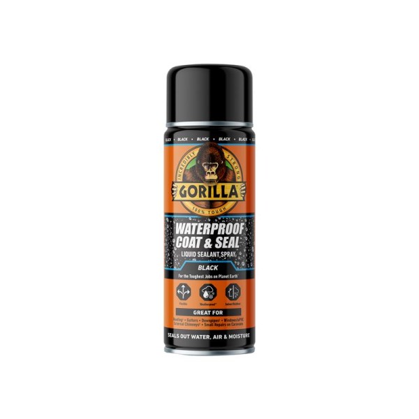 The Gorilla® Waterproof Coat & Seal Spray is a flexible, rubberised coating which seals out water, air and moisture. The applicator nozzle has a controlled spray pattern providing a clean, even coat. Once applied, the self leveling formula smoothly covers small gaps and cracks ensuring a watertight seal. When dried, Gorilla Waterproof Patch & Seal Spray is paintable and temperature/UV resistant resulting in lasting repairs.