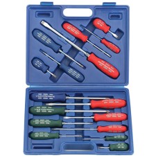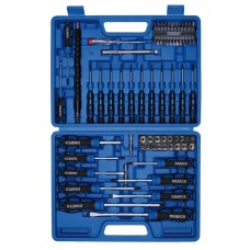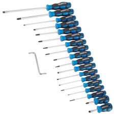 Comprehensive set with a variety of screwdrivers and bits.Contents: plain slot cross slot, PZ TYPE and Draper TX-STAR® screwdrivers; hex keys, bit holder and assorted bits.PZ TYPE products are compatible with *Pozidriv®/Supadriv® fixing systems. Draper TX-STAR products are compatible with †Torx fixing systems. *Pozidriv®/Supadriv® are registered trademarks of Trifast Plc. †Torx is the registered trademark of Acument Intellectual Properties LLC.Contents6 x Plain slot screwdrivers: 2 x 3 x 75mm, 5..
