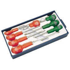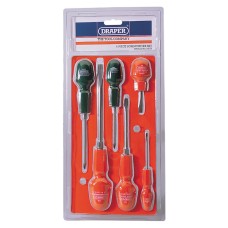 FEATURES:This Draper TX-STAR® soft grip screwdriver set offers a selection of popular sizes. Each screwdriver has a hardened chrome vanadium steel round blade with chrome plating for corrosion protection. The blade tips are magnetic to hold the screw in place, making it easier to deliver more accurate force and precise fastening and loosening. The tips also have a black phosphate coating for added durability. They are fitted with an ergonomic soft grip comfort handle with drive type colour ident..