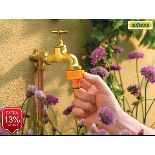 1in BSP tap connector suitable for use with garden irrigation pumps or taps typically found on farms, in factories or in horticulture.The connector securely attaches to the outdoor tap, and converts it to the Hozelock quick connect system. Converts a tap into a universal male hose end connector