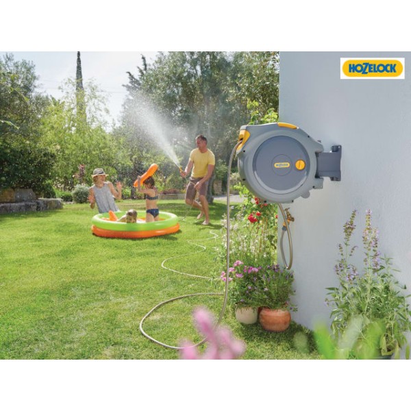 The Hozelock Auto Reel has a 180° rotation which allows the Auto Reel to neatly park against the wall or follow you around the garden. The retraction speed controller ensures a safe and controlled retraction of the hose, only engaging when it is needed. This guarantees the hose will return back into the unit every time with no tangles or fuss.