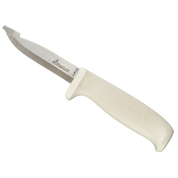 This Hultafors Painter's Knife has been designed to include both a can opener and slotted screwdriver function. The knife blade is made from 2.5mm Japanese knife carbon steel that has been hardened to 58–60 HRC. The cutting edge is sharpened in several stages with a final honing on a leather strop. The handle and sheath are made of extra durable PP plastic.