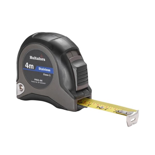 Hultafors Short Stainless Steel Tape PRSS 4m has a polyester coated stainless-steel blade and a stainless-steel spring, and is made for work in wet environments.