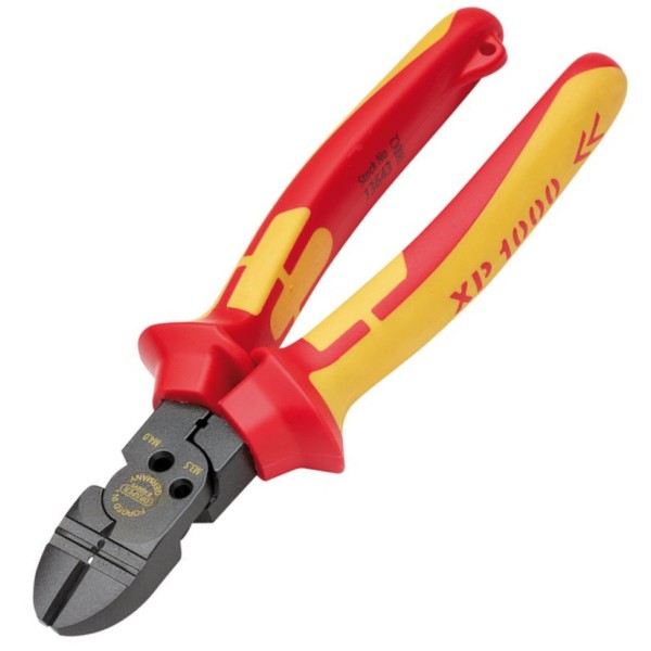 Expert quality XP1000®, manufactured from premium steel forged in Germany. This convenient combination cutter is an all-in-1 side cutter - 3.5mm pattress screw and 4mm conduit cover screw shear, wire bending anvil and 1.5 and 2.5mm wire stripper. The two-part bi-material ergonomic soft grip handle allows maximum grip and user comfort. Handle equipped with tethering hole for attachment to a lanyard while working at height. Tested to 10,000V, these pliers are suitable for working on live circuits of 1,000V AC and 1,500V DC.
