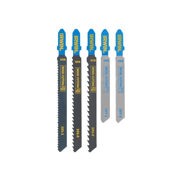 This 5 Piece IRWIN Jigsaw Assorted Blade Set contains the following: