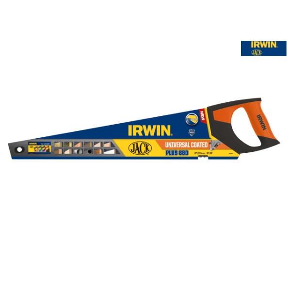 The IRWIN Jack Universal 880 Triple Ground Hardpoint Saw is fitted with a high quality C75 steel blade and features a unique Triple Ground tooth design offering up to 25% faster cutting performance than traditional double ground saws. The blade has a PTFE coating to reduce friction.