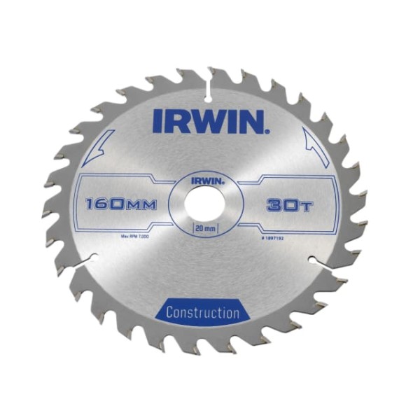 Irwin Tools Construction Circular Saw Blade 160 x 20mm x 30T ATB has been added to your cart
