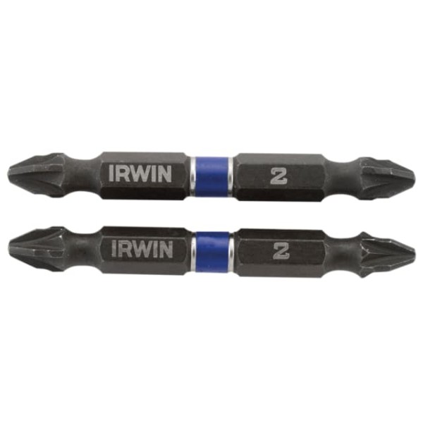 The Irwin Double-Ended Pozidriv Impact Screwdriving Bits are specifically engineered for use in high torque Impact Drivers. They are manufactured from heavy-duty, high-grade steel and have a 3 times increased bit life compared to standard screwdriver bits.