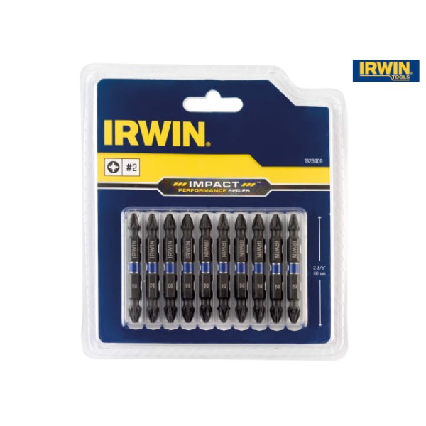 Irwin Tools Impact Double Ended Screwdriver Bits Pozi PZ2 60mm Pack of 10 has been added to your cart