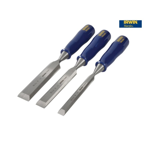 Irwin Tools M444 Bevel Edge Chisel Blue Chip Handle Set of 3 has been added to your cart