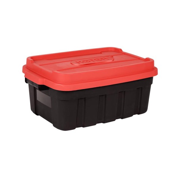 The Keter Roc Tuff Tote has a virtually unbreakable ultra heavy duty construction. A secure snapping lid protects your items from dust and moisture. Meets all your storage needs inside and out, ideal for moving your items to, from and around the work site. This storage tote will provide years of durable storage space whenever you need it.