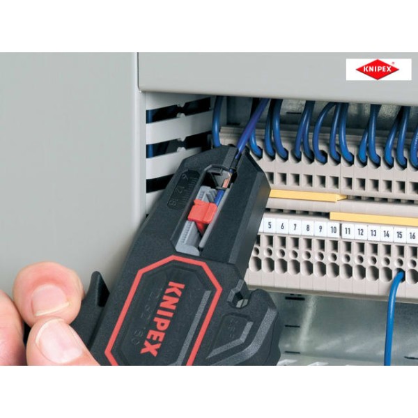 These Knipex KPX1262180 are used for single, multiple and fine stranded cables of 0.2 up to 6.0 mm sq with standard insulation. Adjusts automatically to the respective cable cross-section which prevents damage to the conductor.The KPX1262180 wire cutter is suitable for copper and aluminium wire up to 2.5 mm sq and features an adjustable length stop from 6mm-18mm.