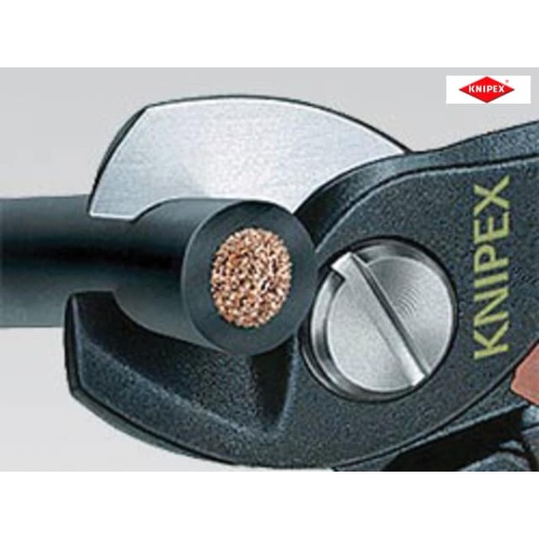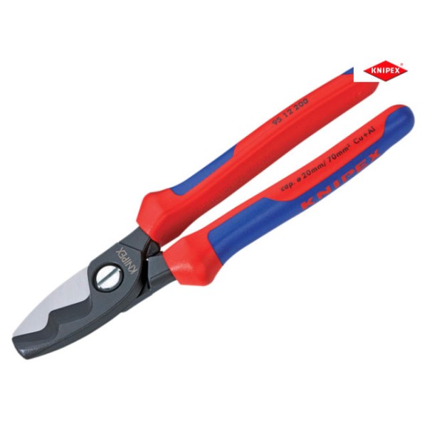 The Knipex 95 12 200 cable shears with twin cutting edges are ideal for cutting copper and aluminium cables, single and multiple wire cables but are not suitable for steel wire and hard drawn copper conductors.