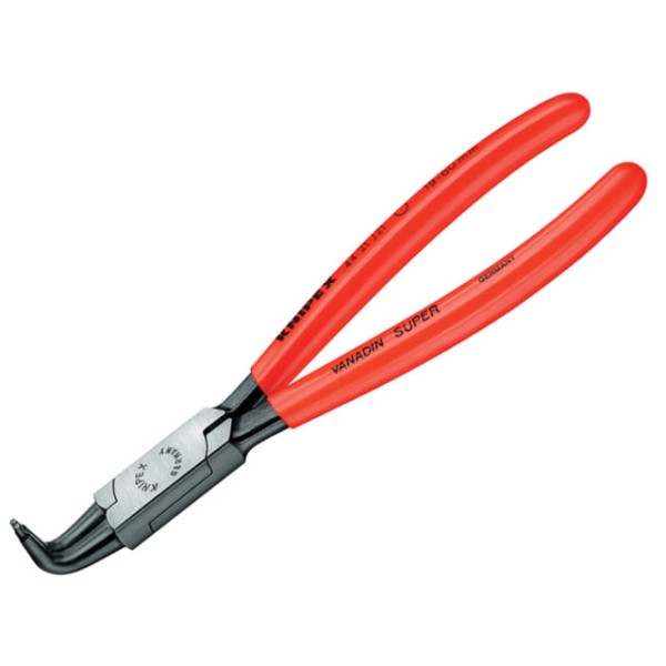 The Knipex 44 21 series of internal bent circlip pliers are constructed from chrome vanadium solid style forged top quality steel with precision non-slip tips for added strength and durability.