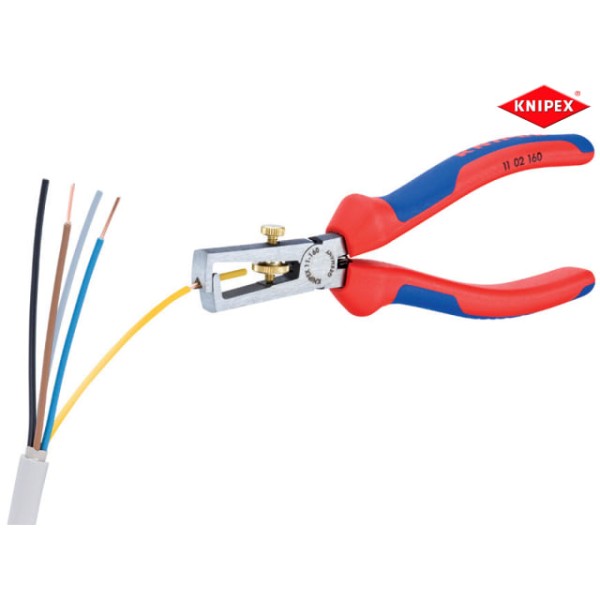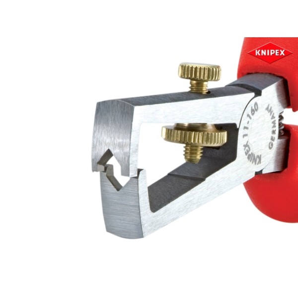 The Knipex KPX1102160 are made from special tool steel for strength and durability, this oil hardened wire stripper features a adjustable screw for setting the desired diameter. it cuts wire diameters up to a maximum of 5 mm or 10mm² cable cross section.