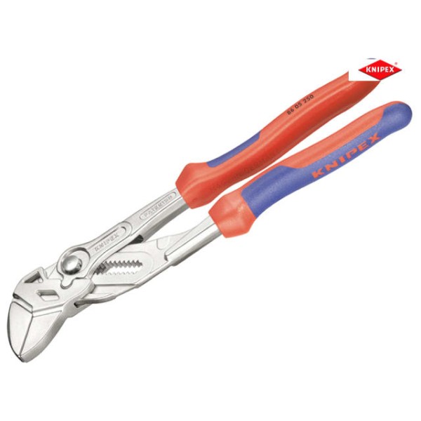The Knipex 86 05 Series Pliers Wrench with 2 component, soft-grip handles and smooth parallel jaws. For cautious installation of plated fittings or sensitive surfaces. More effective, faster and with greater capacity than a adjustable spanner of the same size.